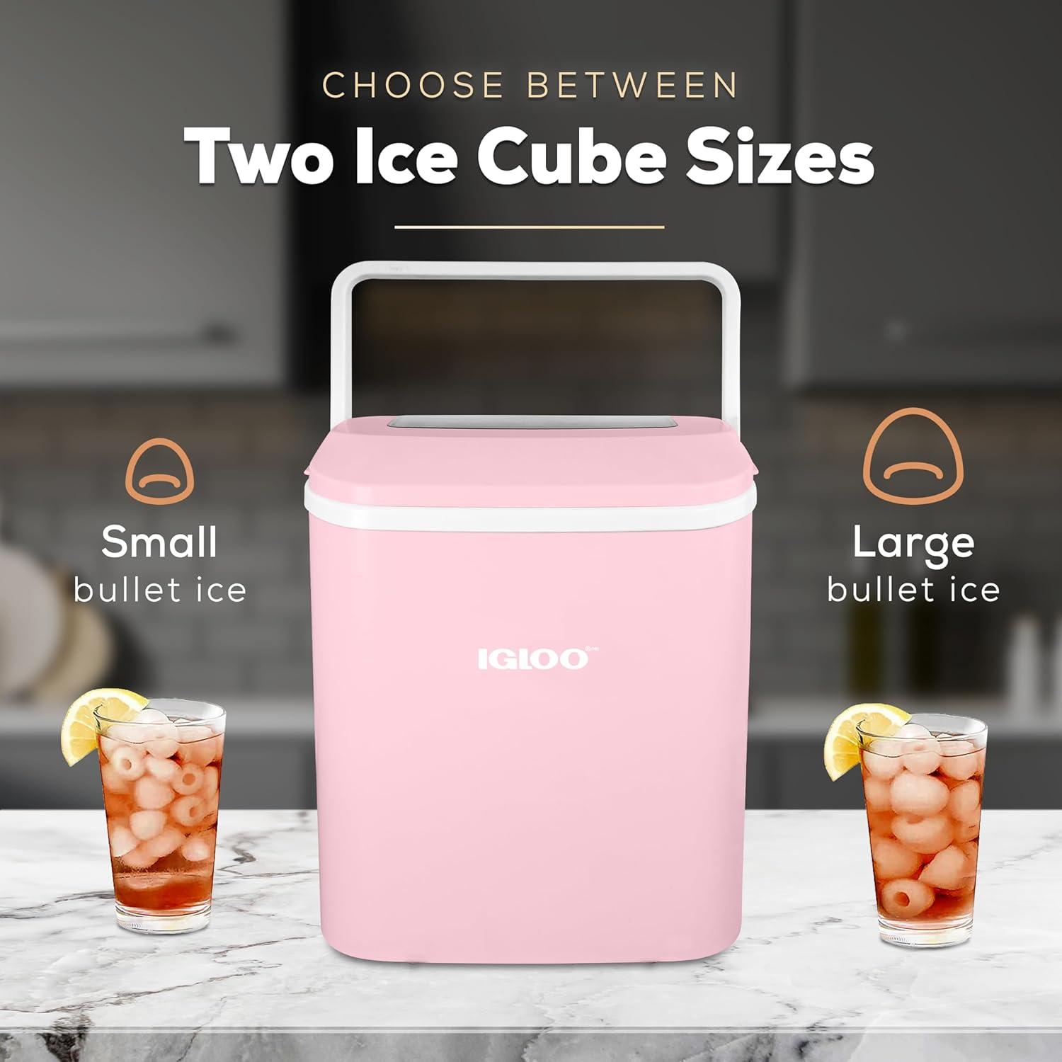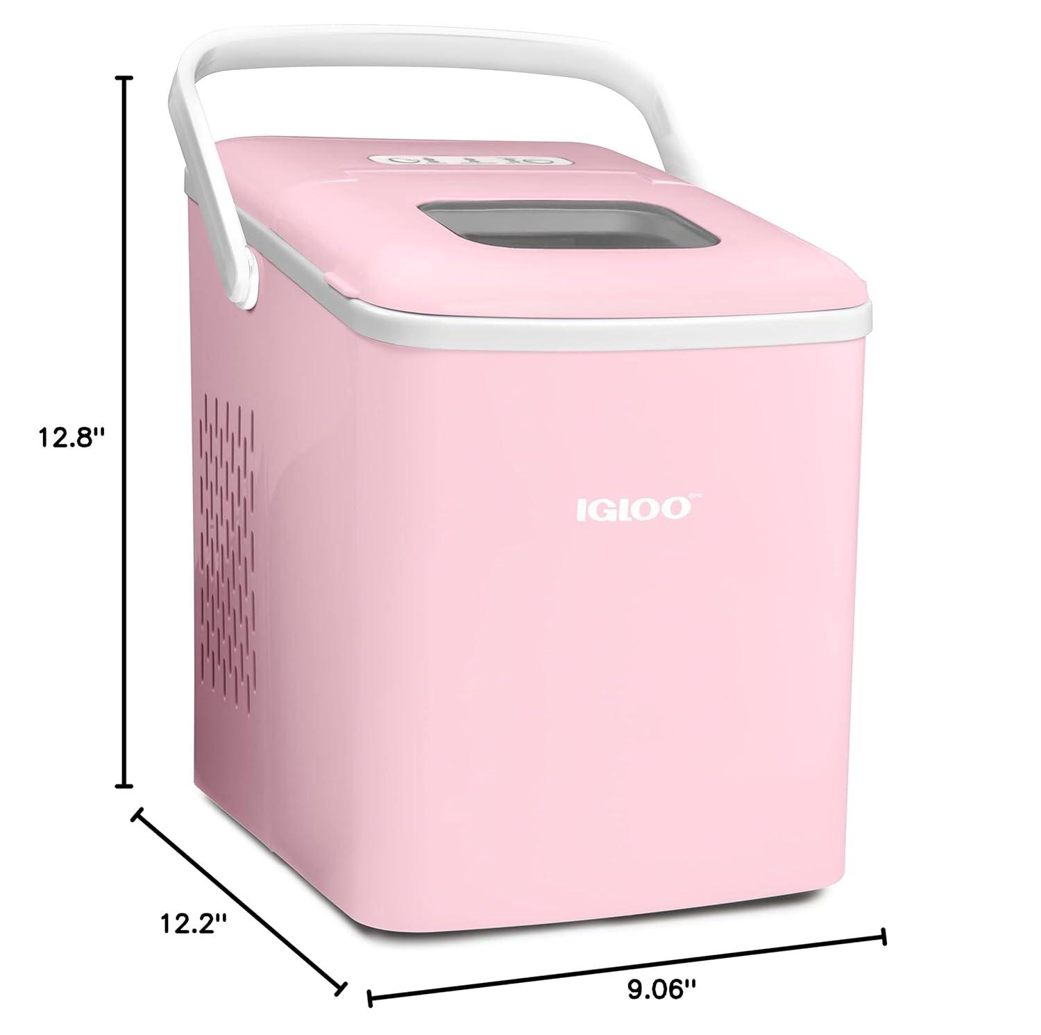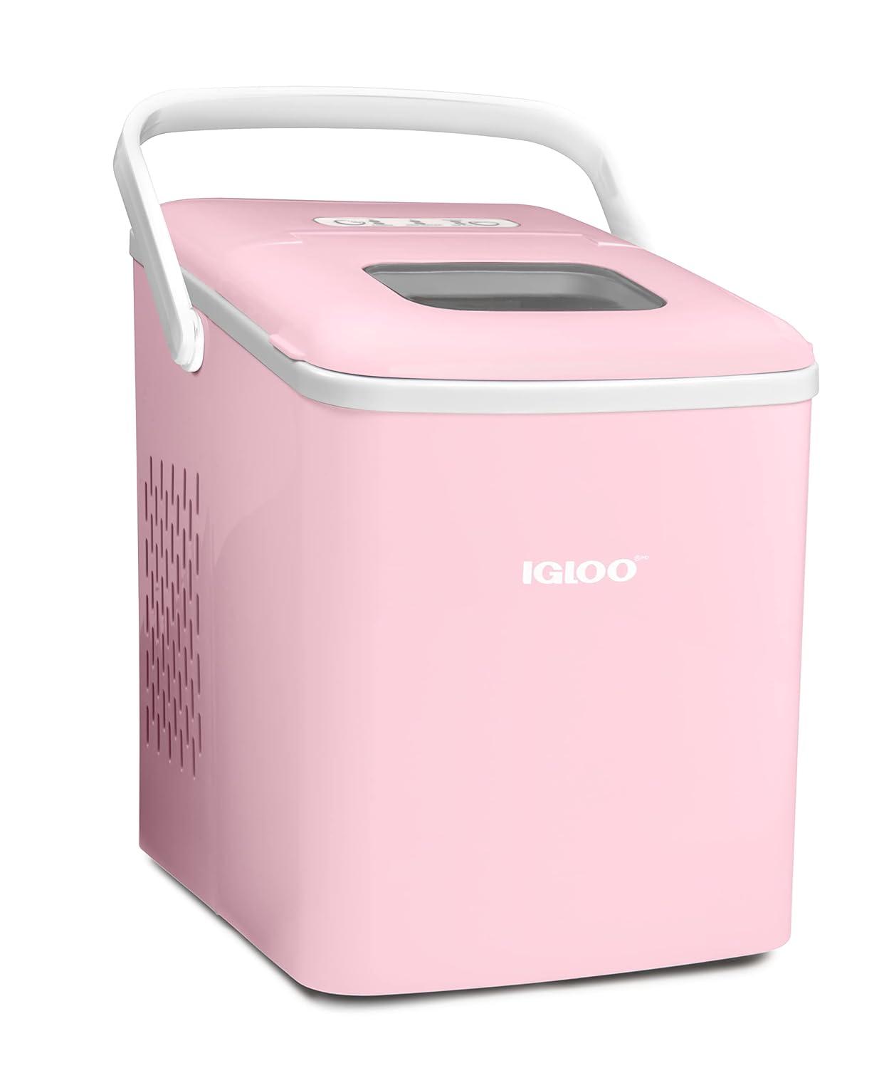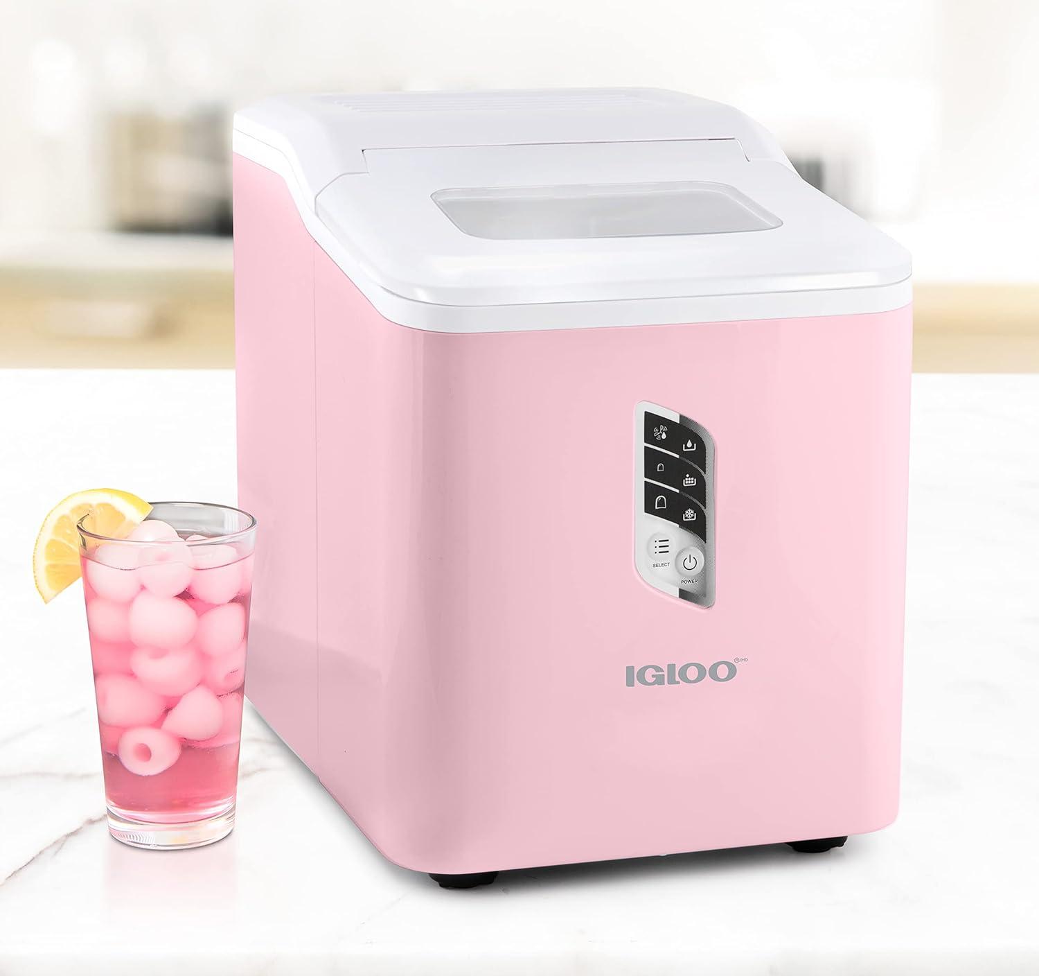 Meet the Igloo Self-Cleaning Countertop Ice Maker, your stylish and portable solution for keeping beverages perfectly chilled! In 7 minutes, you'll have your first batch of ice ready, and in a full day you can make up to 26 lbs. of ice. With a design that's sleek yet compact, you will save a ton of extra counterspace while still producing plenty of ice for keeping drinks cool. Operation is simple with a single-button control panel with LED indicator lights that signal when ice is full or water is needed. The included 1-pound ice basket and ice scoop ensures easy ice serving. The automatic five-cycle self-cleaning function makes clean up easy and allows clean ice to be made every time. Perfect for pool parties, home bars, dorm rooms, offices and more! Cold Drinks. Warm Smiles.