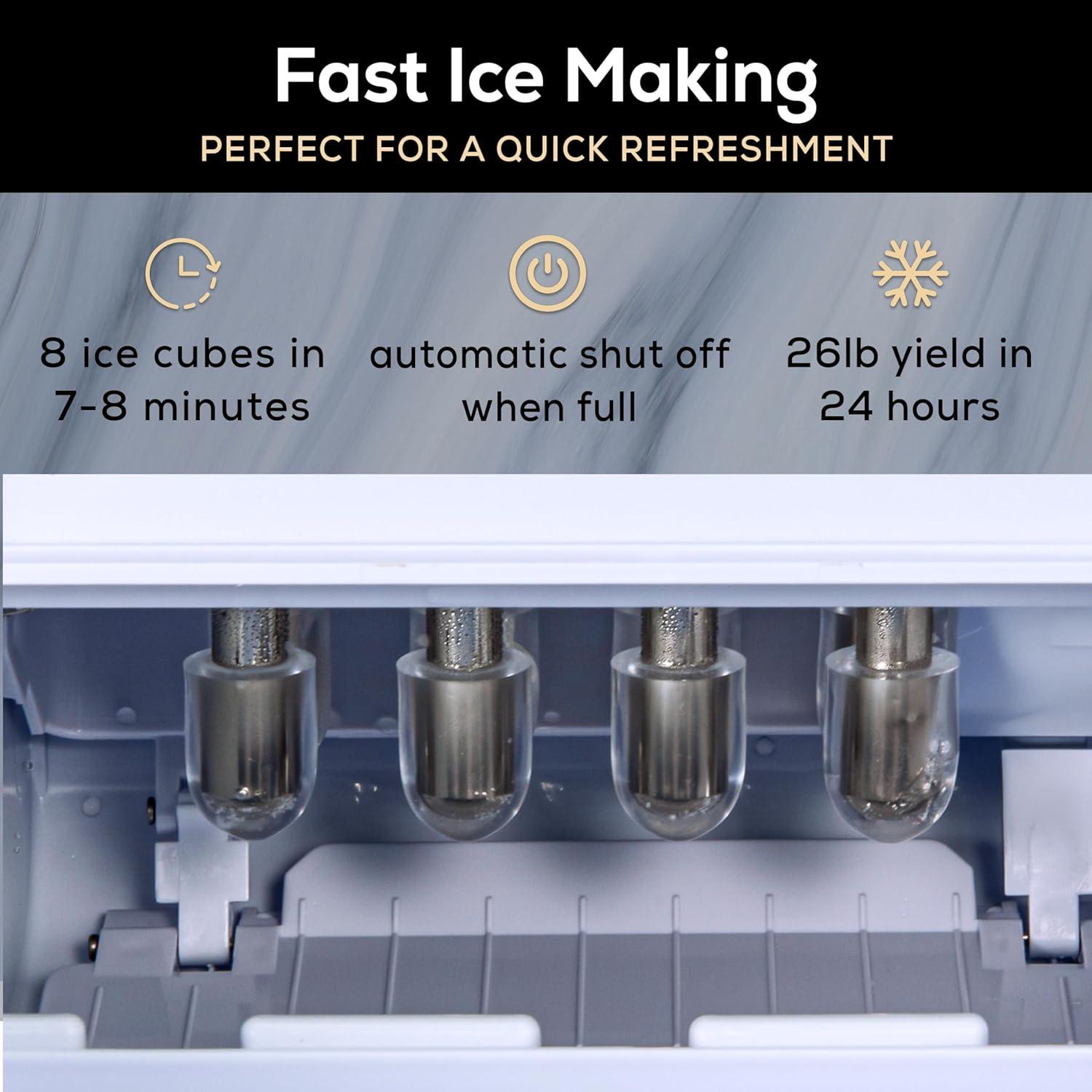 HIGH ICE PRODUCTION: Produces up to 26 pounds of ice in 24 hours, ensuring your drinks stay cold throughout the day.