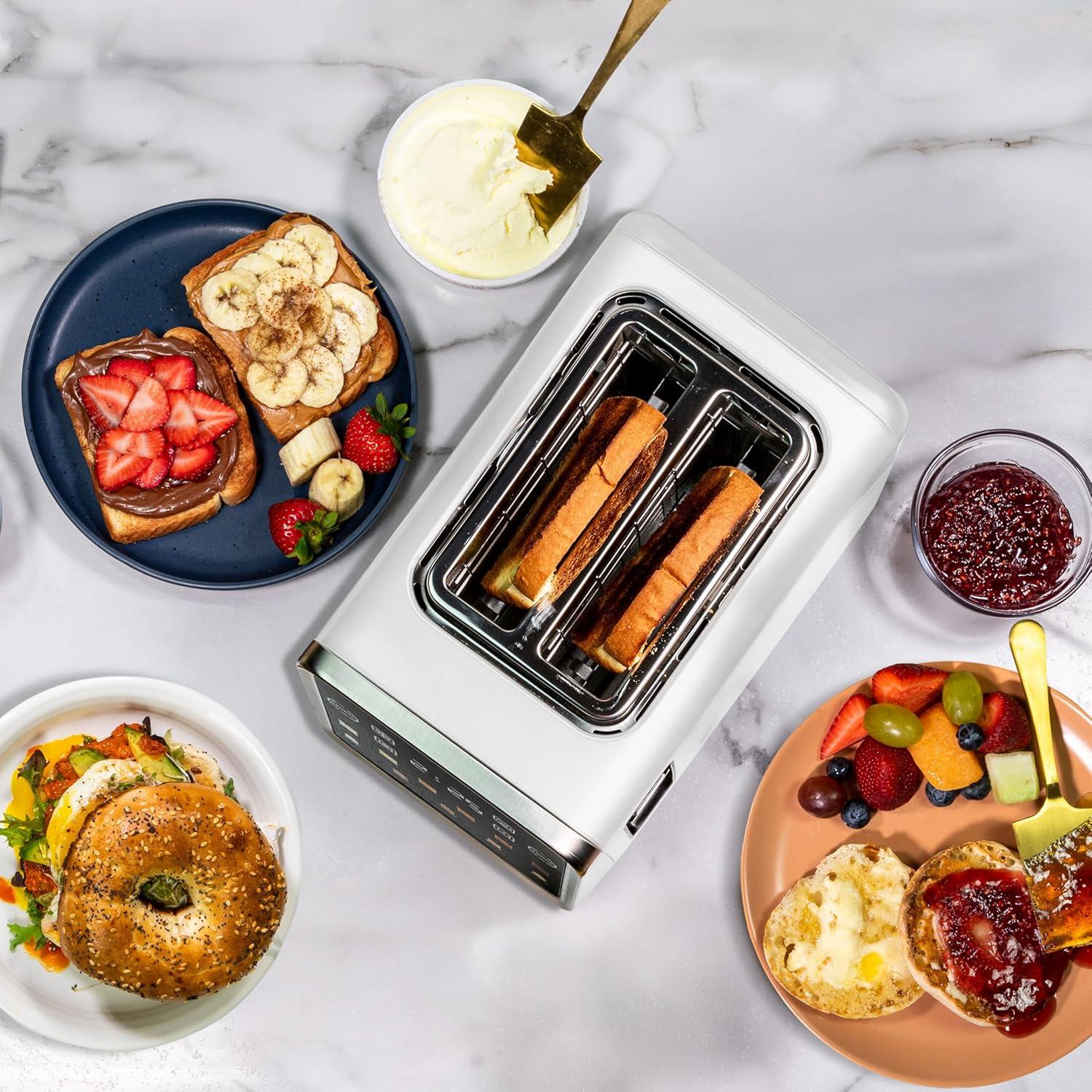 With the Inspirex Touchscreen Toaster, perfection is at your fingertips. Toast your favorite type of bread, bagel, English muffin, or pastry, perfectly crispy on the outside while keeping the inside moist and delicious. On the quick response touchscreen display, you can choose from 5 bread types and 6 browning levels, each with its own toasting algorithm to reach the precise toasting level you desire. The pre-programmed times are tested and ensured to reach the exact browning level selected. Save your go-to bread type to get started instantly and hasten your morning routine. Utilze Defrost, Reheat, and Single-Slot settings are also available for you to make further adjustments to your toast. The sleek, modern design makes it a staple for any kitchen and will inspire you to make excellent recipes!