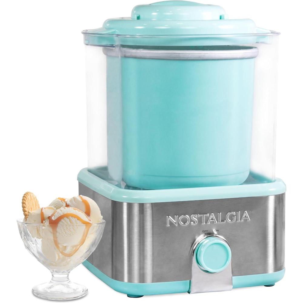 Nostalgia Electric Ice Cream Maker with 2-Qt Double Insulated Gel Canister & Stainless Steel Base – Makes Sorbet, Soft Serve, and Frozen Yogurt – Aqua(Aqua)