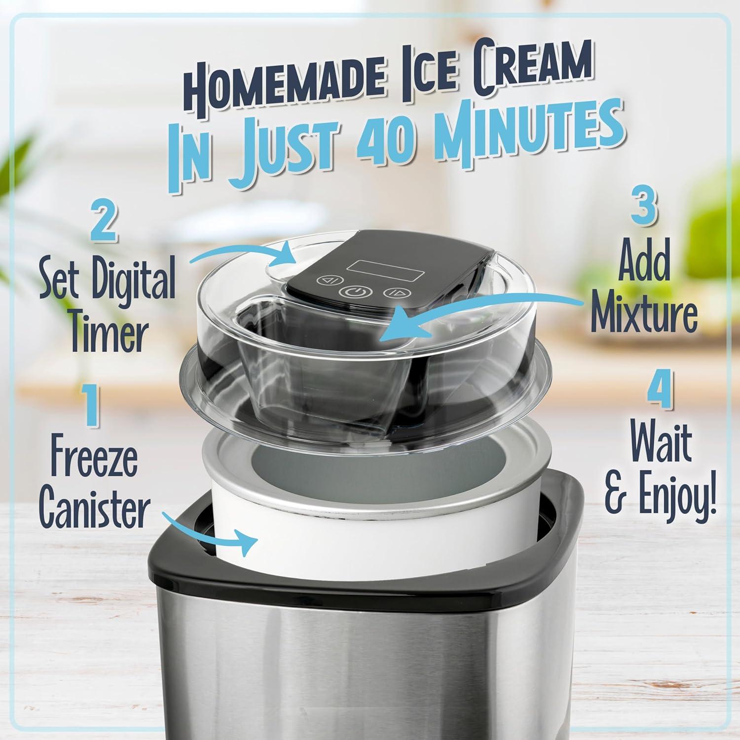 2-QUART CAPACITY: Make up to 2 quart of delicious ice cream or other frozen treats like frozen yogurt, gelato, sorbet and more in almost 30 minutes​